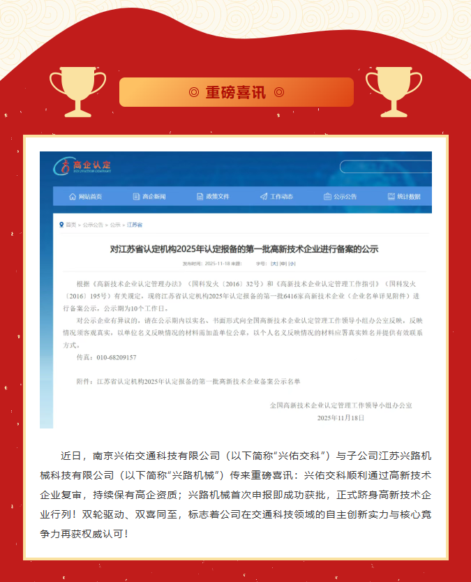 雙喜臨門 | 興佑交科高企復審圓滿通過、興路機械新獲認定,創新之路再攀高峰