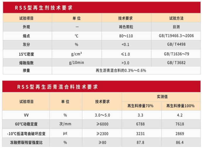 ③ 提升再生瀝青混合料綜合性能:使用RSS 型再生劑制備的再生瀝青混合料高低溫以及抗水損性能均有提升,且可以有效避免再次老化。