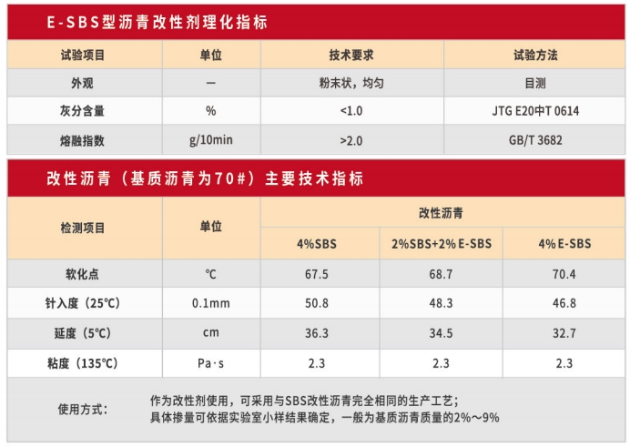 E-SBS型瀝青改性劑用于制備更具性價比的高性能改性瀝青,可廣泛應用于新建、改擴建及養(yǎng)護等瀝青路面工程項目中。